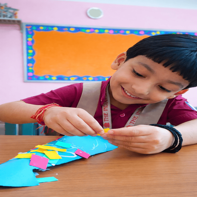 This was followed by an art-integrated craft activity designed to reinforce these concepts. Each child decorated a tie-shaped cut-out using vibrant origami paper through tearing and pasting techniques. These ties symbolised their unique qualities, and the children proudly carried them home as tangible representations of their strengths.
