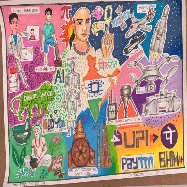 Swarnima Bist of Class XD brought recognition to the School by securing the Second Prize in the Arts category at this esteemed event. Competing alongside talented students from different institutions, she demonstrated exceptional creativity and originality. Swarnima participated with an impressive artwork developed under the theme “Viksit Bharat”. Her creation vividly depicted the vision of a developed and progressive India, effectively combining artistic expression with a meaningful message. The artwork was widely appreciated for its depth, clarity of concept, and aesthetic excellence.