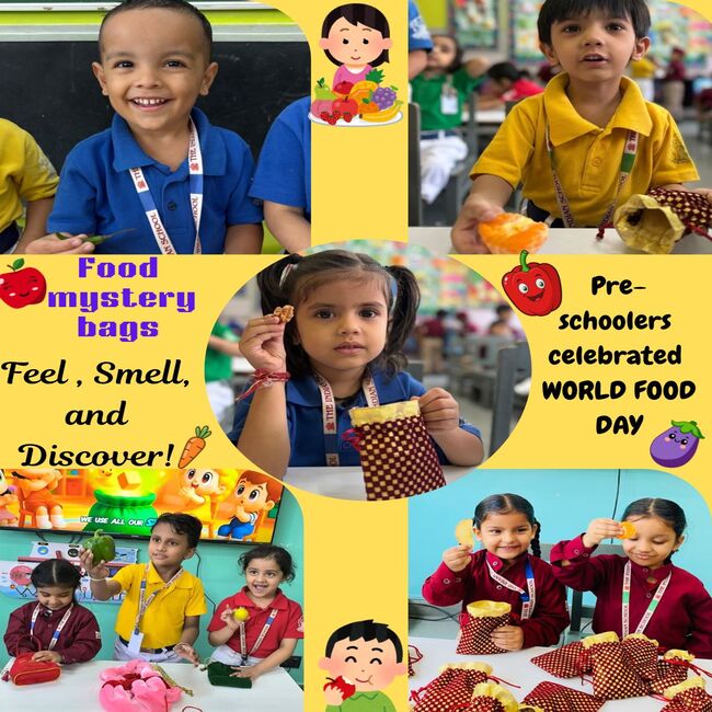The Pre schoolers took part in an exciting ‘Mystery Food Bag’ activity, where they explored a bag filled with food items like carrots, apples, nuts, pulses, rice, and corn. Using their sense of touch and observation, the little 'detectives" identified each item, developing their curiosity sensory awareness, and fine motor skills, while having loads of fun!