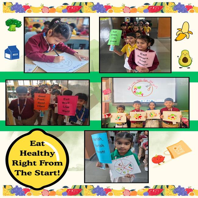 The celebration concluded with a lively corridor parade, where the young learners proudly displayed slogans and placards promoting messages like “Say No to Junk Food,” “Eat Right, Stay Bright,” and “Zero Food Wastage.” The cheerful chant and colourful displays filled the corridors with positive energy and awareness.