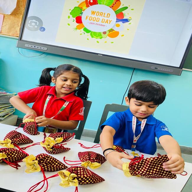 On 16th October 2025, the Pre School and Pre Primary of The Indian School joyfully observed World Food Day with enthusiasm and curiosity. The day began with a cheerful discussion on the importance of food, the value of eating healthy, and the need to avoid food wastage.